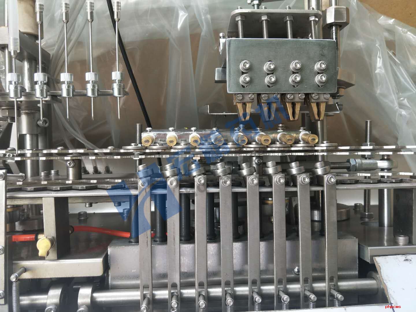 自动止灌机装置的作用是防止机器在生产过程中,遇着个别缺瓿或安瓿使用完但机器仍在运转,而不使药水注出,避免污损机器,防止浪费,其工作原理及调节方法如下: