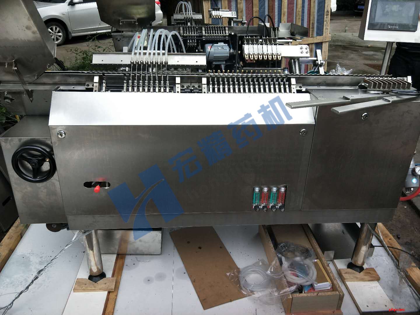 传送安瓿瓶,当安瓿规格互换时,需将上齿板略微调节,否则或影响安瓿瓶的传送。