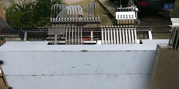 灌装是安瓿药品包装的重要工序。对于常用的1~ 2mL安瓿药品,清洁、灌装和封口工作可在一台专用的双针安瓿瓶拉丝灌封机上进行,灌封机共